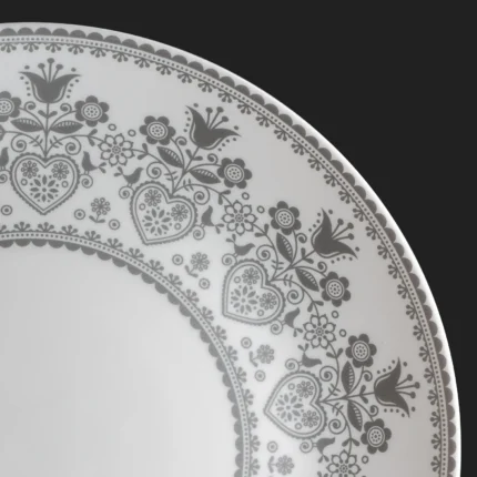 طرح آرورا از گلها و پیچکهای منظم تشکیل شده که به صورت یک قاب دایرهای دور تا دور بشقابها را تزئین کردهاند. این نقوش بهصورت بسیار هماهنگ و قرینه طراحی شدهاند و جلوهای کلاسیک، اصیل و شکیل ایجاد میکنند.