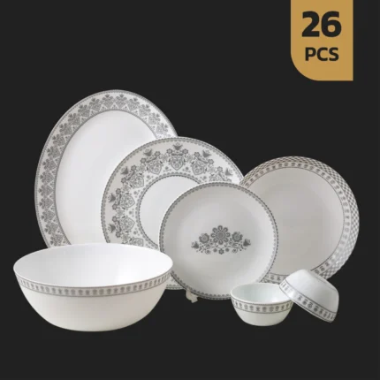 سرویس ۲۶ پارچه آیروپال طرح آرورا یکی از محبوبترین طرحهای برند آیروپال است که با الهام از نقوش کلاسیک اروپایی و ترکیب آن با ظریفکاریهای مدرن تولید شده است. این سرویس در دو رنگ خاکستری و آبی سرمهای عرضه میشود که هرکدام حس و حال متفاوتی به میز پذیرایی شما میدهد.