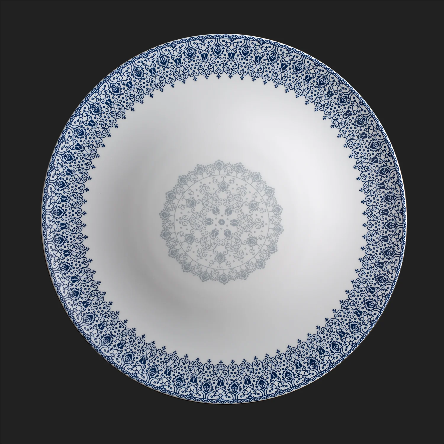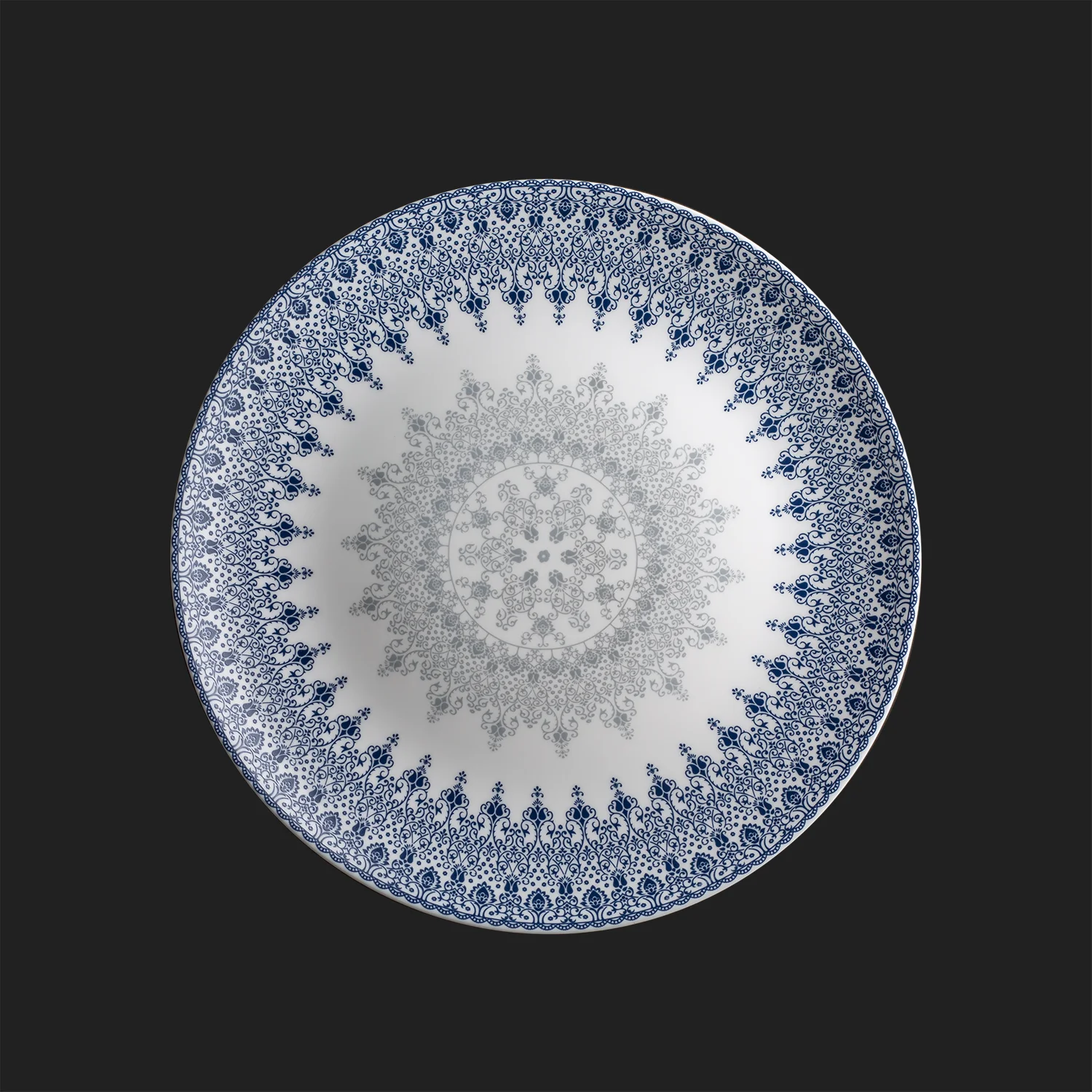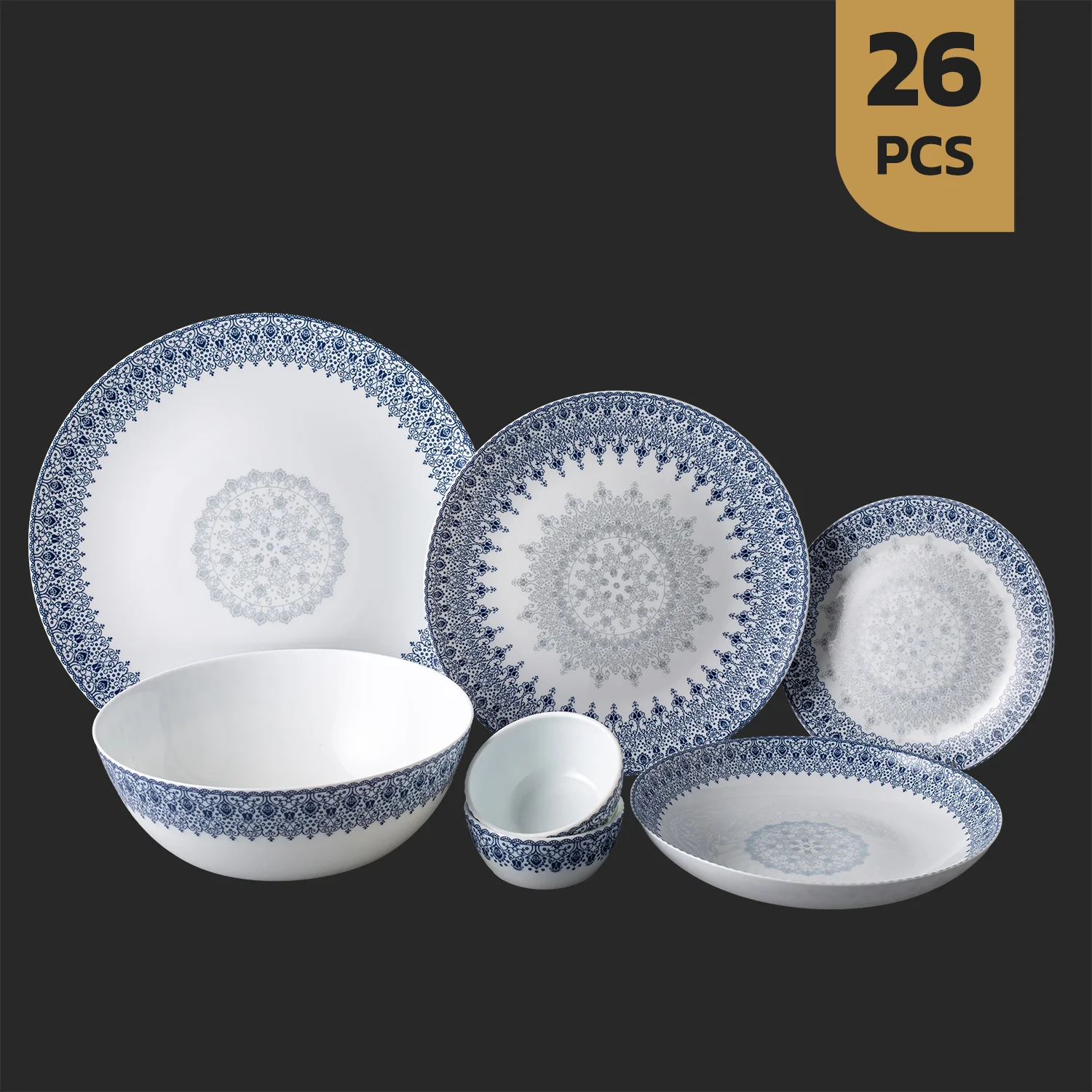 سرویس ۲۶ پارچه آیروپال طرح «نبیت» با الهام از نقوش اسلیمی و ختایی، جلوه‌ای اصیل و در عین حال مدرن به میز شما می‌دهد. نقش هندسی-اسلیمیِ مرکز بشقاب با حاشیه‌ی ظریف پیرامونی تلفیق شده تا چشم در اولین نگاه روی میز متمرکز شود و چیدمانی منظم و لوکس بسازد. بدنه‌ی گرد کلاسیک ورژن 3 (V3) باعث می‌شود ظروف خوش‌فرم‌تر، کم‌جا و متعادل روی میز قرار بگیرند. جنس اپال (آرکوپال) نیز سفیدی شفاف، وزن کمتر نسبت به چینی سنتی و مقاومت مطلوب در برابر خط‌وخش‌ها و شوک‌های حرارتی متعارف را به همراه دارد؛ بنابراین «نَبیت» برای استفاده‌ی روزمره و پذیرایی رسمی یک انتخاب هوشمندانه است.
