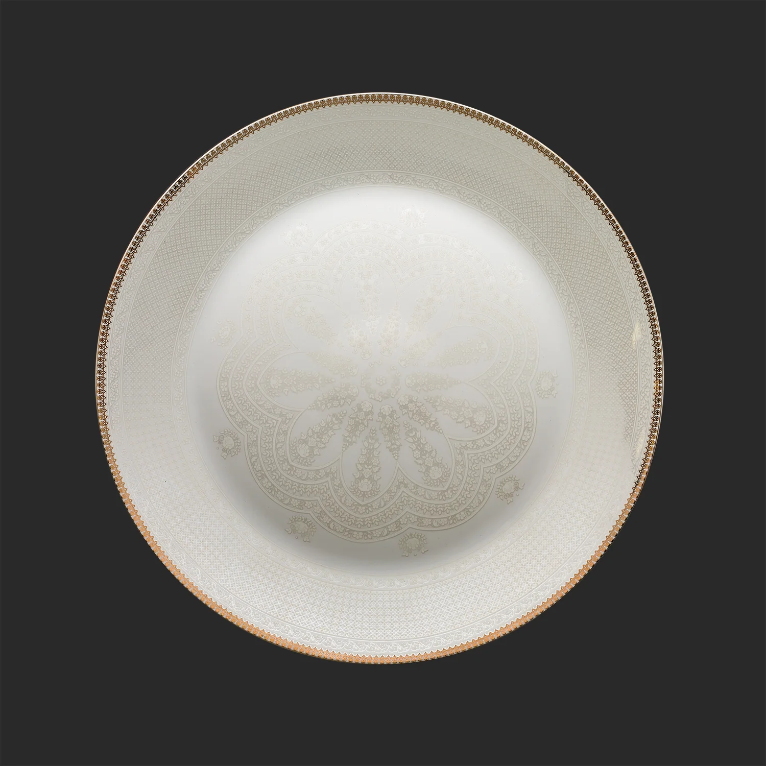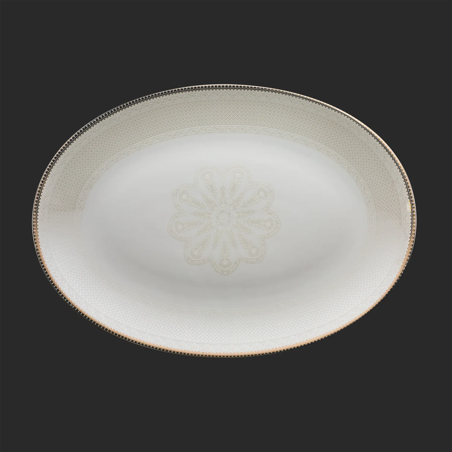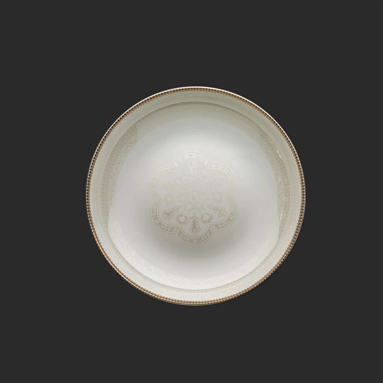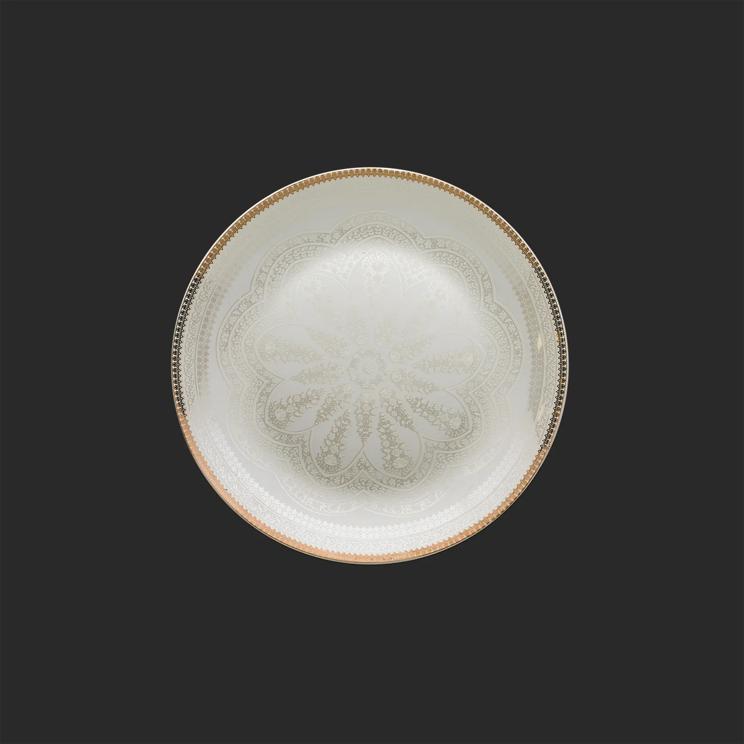 طرح زاریا با نقوش ظریف و الهام‌گرفته از هنر ایرانی، همراه با حاشیه‌ی طلایی براق، جلوه‌ای لوکس و چشمگیر دارد. این طراحی خاص، فضایی اشرافی و متمایز ایجاد می‌کند که به راحتی با سایر ظروف پذیرایی هماهنگ می‌شود. رنگ سفید بدنه در کنار خطوط طلایی، ترکیبی بی‌زمان است که هیچ‌گاه از مد نمی‌افتد و همیشه جلوه‌ای شیک دارد.