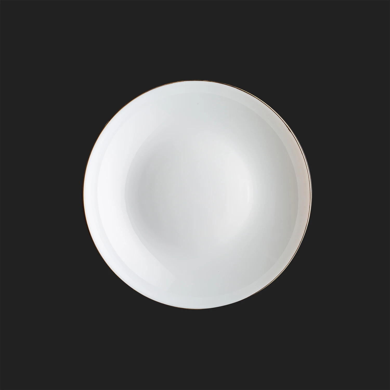 رنگ سفید با خط طلایی یکی از محبوبترین طراحیها در ظروف پذیرایی است که هیچوقت از مد نمیافتد و جلوهای لوکس به میز غذا میدهد.
