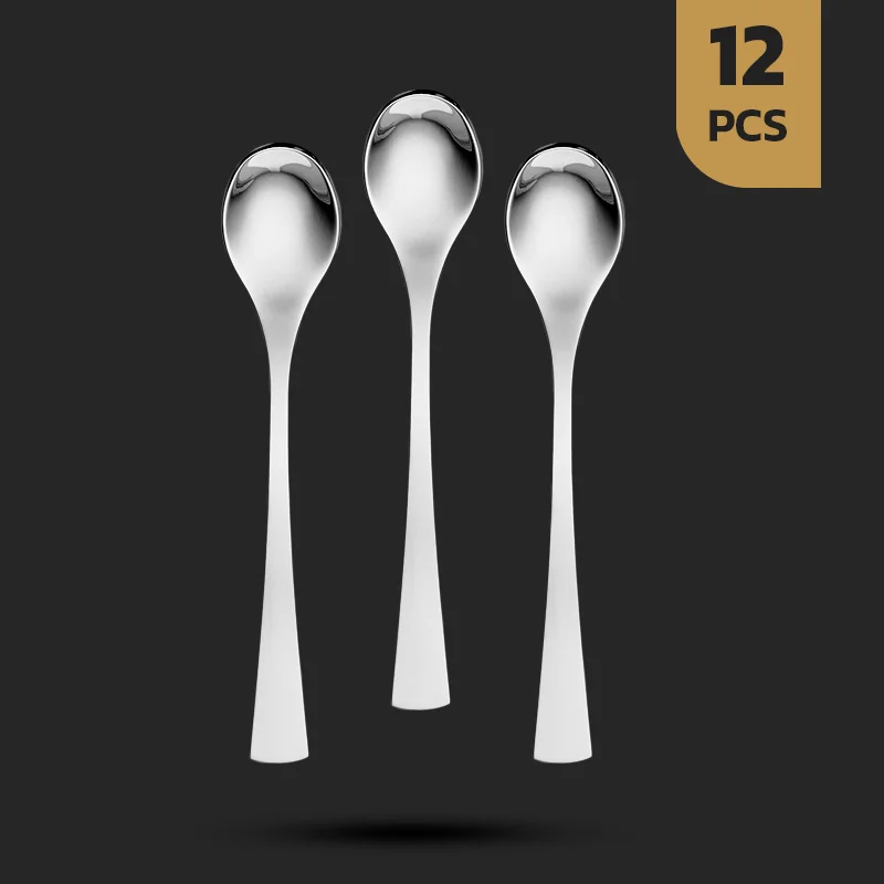 جنس این قاشقها از استیل ضدزنگ ۱۸/۱۰ است؛ آلیاژی با درصد بالاتر کروم و نیکل که در برابر زنگزدگی، کدر شدن و خطوخش مقاومت بالایی دارد و برای استفاده روزمره و شستوشوی مکرر (حتی در ماشین ظرفشویی) مناسب است.