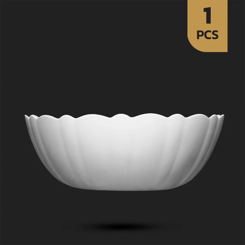 کاسه سالاد سفید اپال گرد کنگره انتخابی کاربردی و شیک برای سرو انواع سالاد، میوه، خوراک‌های حجیم، سوپ خانوادگی و حتی تنقلات در مهمانی‌هاست. لبه‌ی کنگره‌دار جلوه‌ای کلاسیک و زیباتر به این کاسه داده و آن را با سایر ظروف سفید به‌خوبی هماهنگ می‌کند. این محصول به‌صورت فله و بدون برند عرضه شده و توسط گروه کارخانجات مقصود با کیفیتی یکنواخت و استحکام بالا تولید می‌شود.