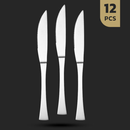 سرویس 12 پارچه کارد غذاخوری یکی از پرکاربردترین کاردها در سرویس قاشق و چنگال استیل است. نوک گرد و تیغه بلندتری از کارد کره دارد. برای برش غذاهای سفت مثل سبزیجات و گوشت های نرم استفاده می شود و یکی از اجزاء پرکاربرد در سرویس قاشق چنگال استیل است.